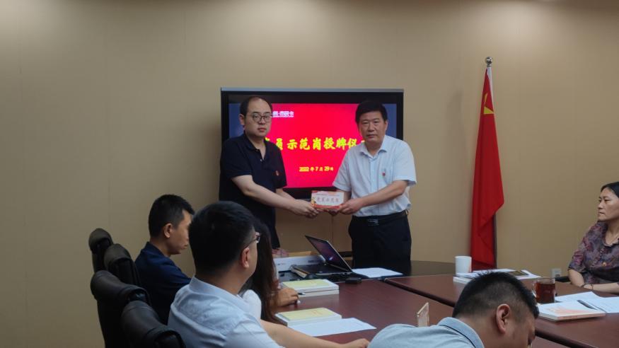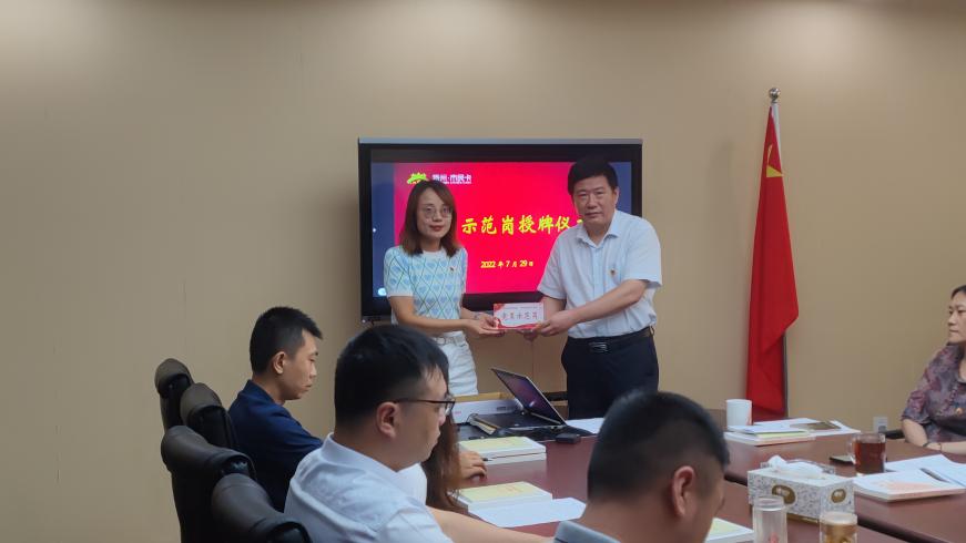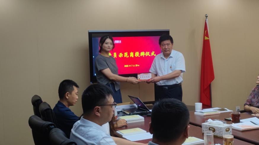 会上,党支部举行了党员示范岗授牌仪式,公司党支部书记为党员示范岗授牌,号召党员学习他们不怕吃苦、甘于奉献、攻坚克难、勇于担当的精神,形成学习先进、争当先进的良好氛围。