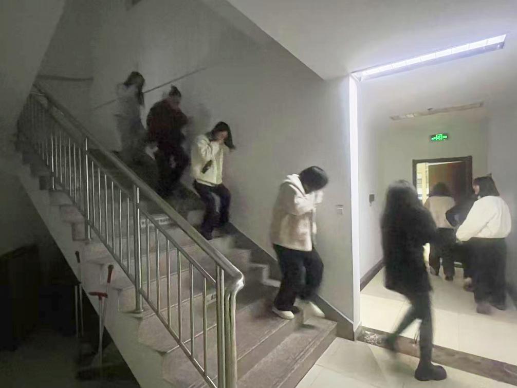 在消防安全培训环节,通过观看火灾警示视频,参训人员系统学习了火灾预防、扑救及逃生知识。随后进行的应急疏散演练中,全体人员按照“弯腰低姿、捂鼻沿墙”的规范动作,迅速、有序完成撤离。
